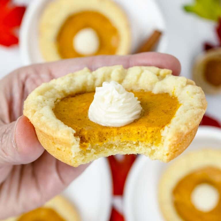 Pumpkin Pie Sugar Cookies are topped with a pumpkin pie filling, and have the perfect cookie-to-pumpkin flavor ratio in every bite! These easy little desserts are always a hit.