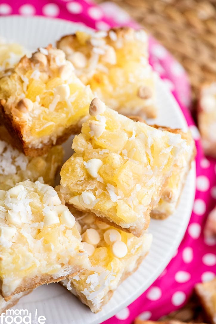 Hawaiian Magic Cookie Bars are tropical dessert treats that are great anytime of year! These Pineapple Coconut Magic Cookie Bars with macadamia nuts and white chocolate chips are fun and easy to make too!