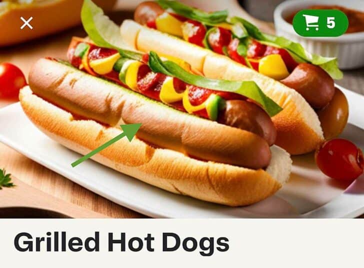 At first glance the image looks like two grilled hot dogs, but then you notice the weird buns, strange lettuce garnish, and loopy condiment topping. (Photo credit: Instacart)